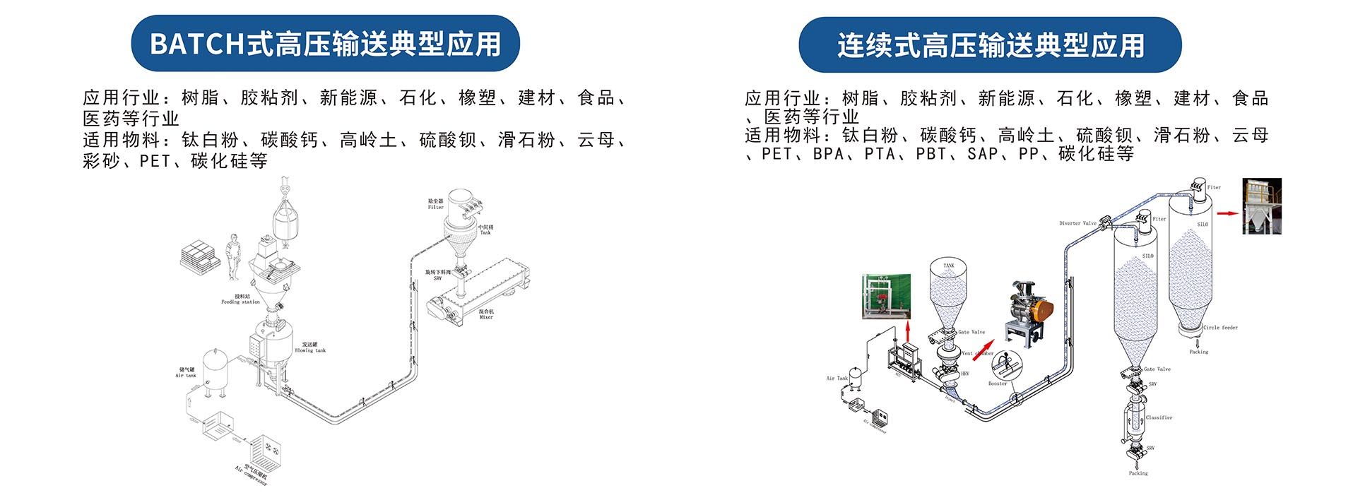 公司核心競爭力粉粒體輸送技術工藝設計及設備制造,該系統能滿足粉體物料大流量遠距離密閉傳輸,保障生產環節安全、環保。公司注重技術研發和工藝研究,多款產品領導行業發展,其中密相輸送倉泵市場占有率逐年上升,氣浮式活化料斗、均值供料器、 ACU高壓連續輸送控制器國內先進產品。公司產品主要面向化工、橡塑、醫藥、建筑、食品行業,能提供前期工藝設計、設備選型、設備制作安裝服務。